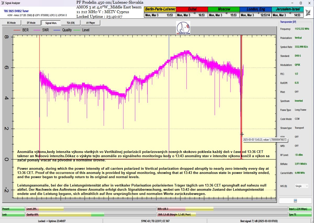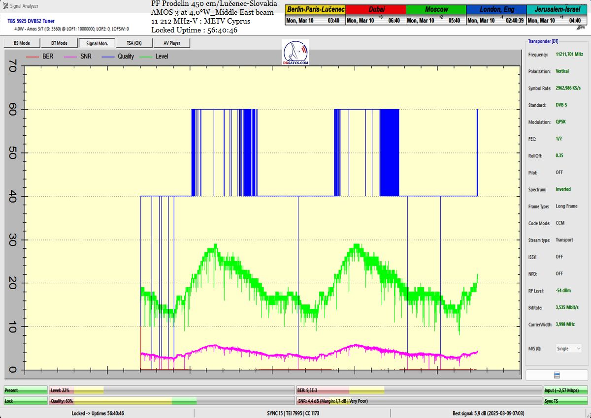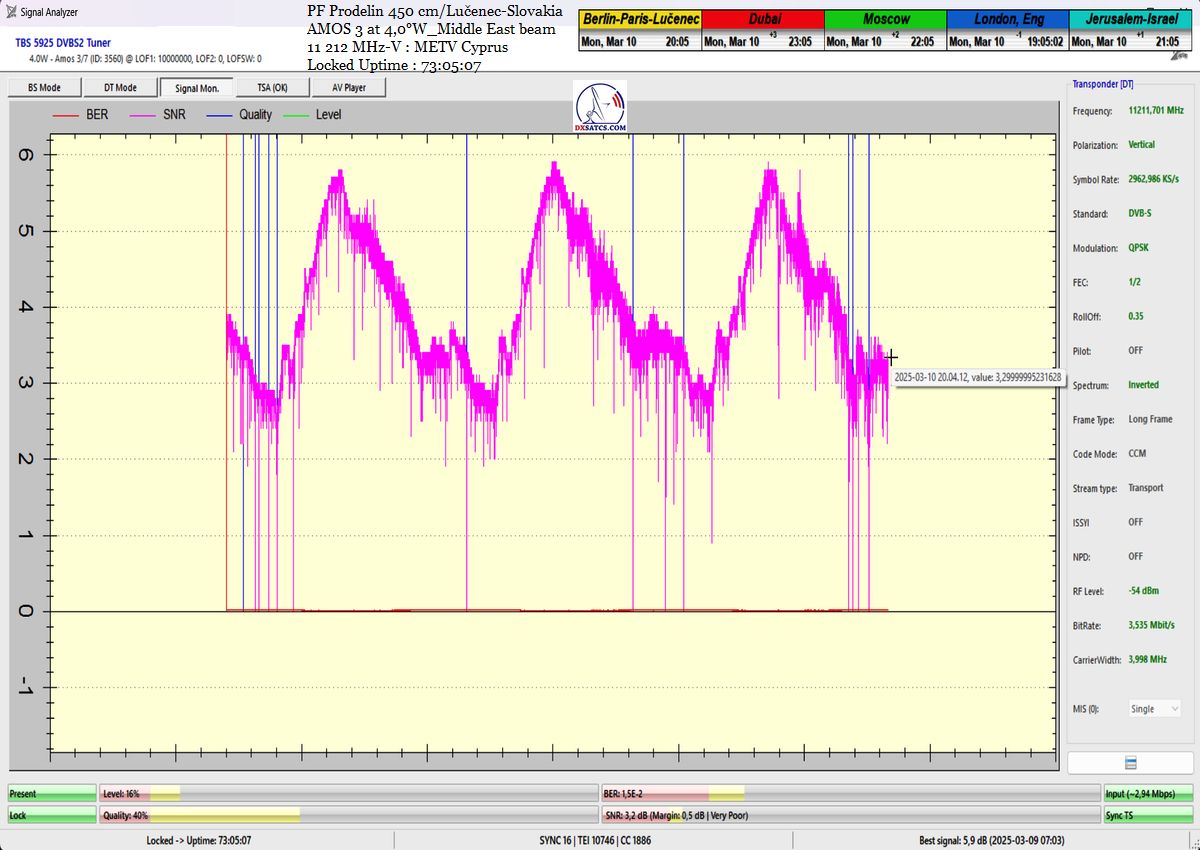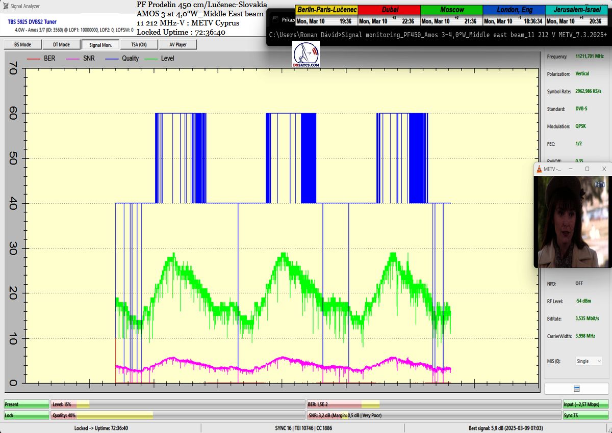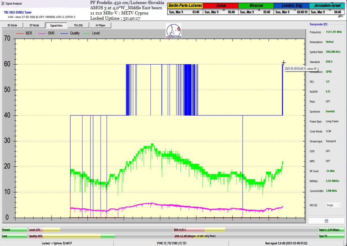 a hlavne stability príjmu 99,99% TV nosnej METV na f=11 212 MHz_V z dužice Amos 3,ktoré sú verifikované a dokázané jednotkou signálneho
