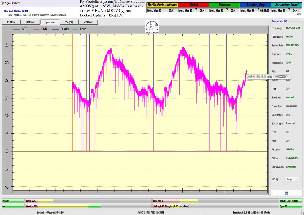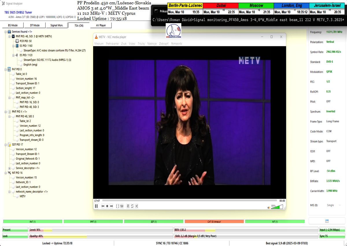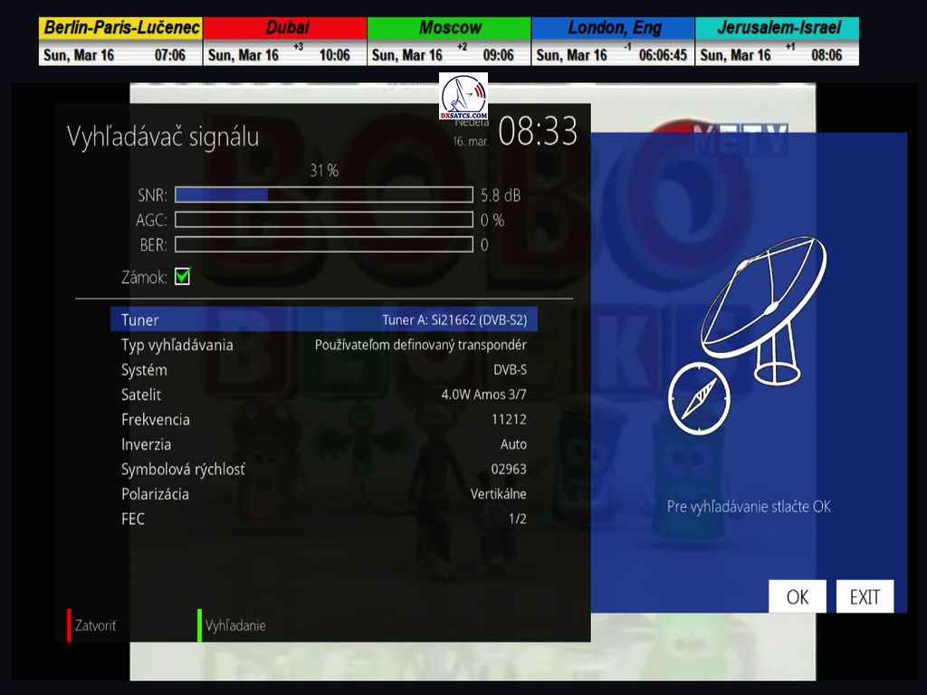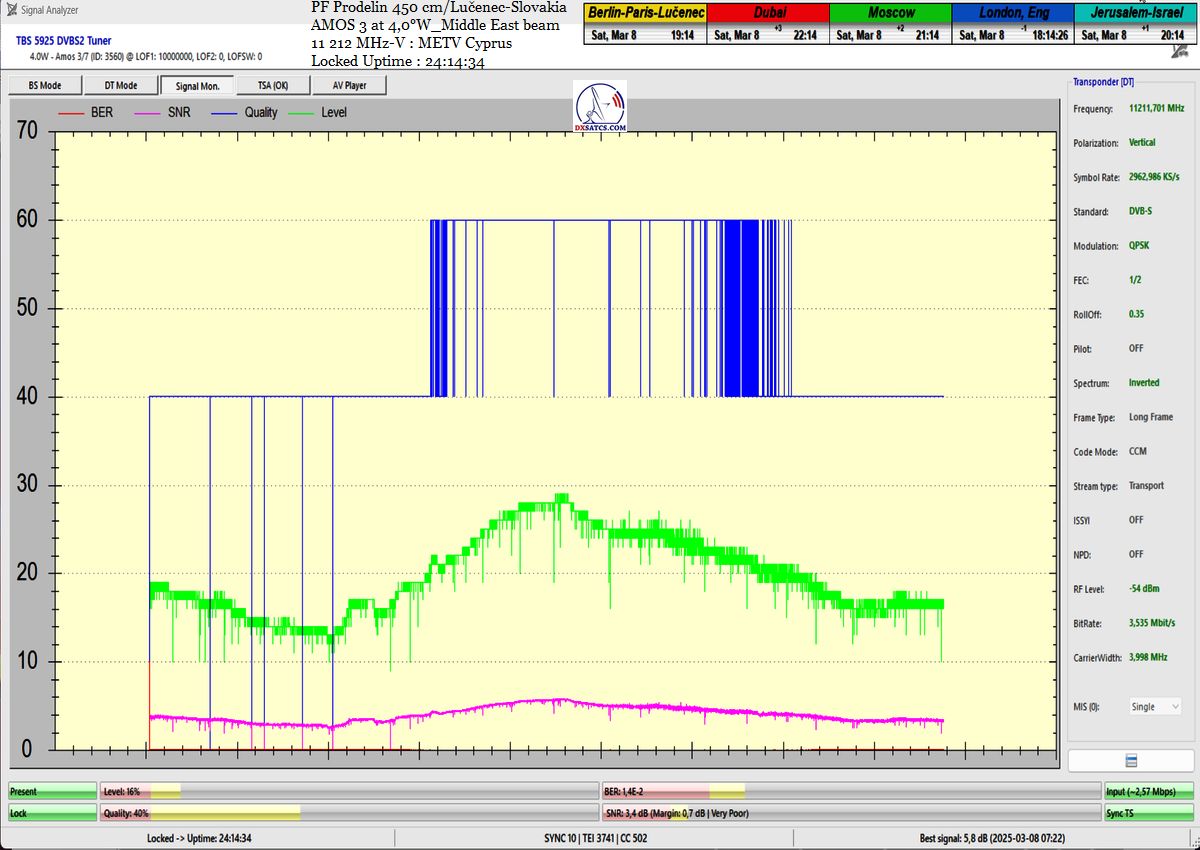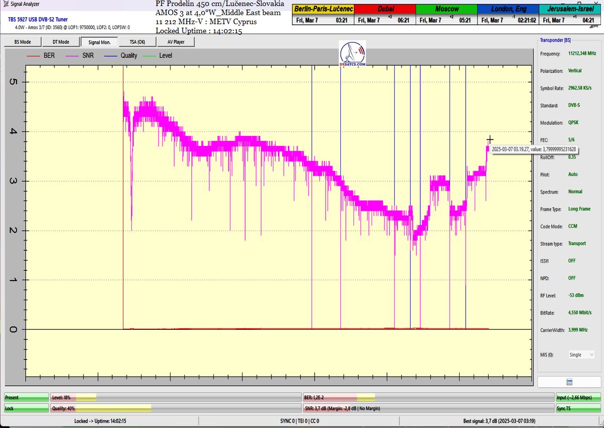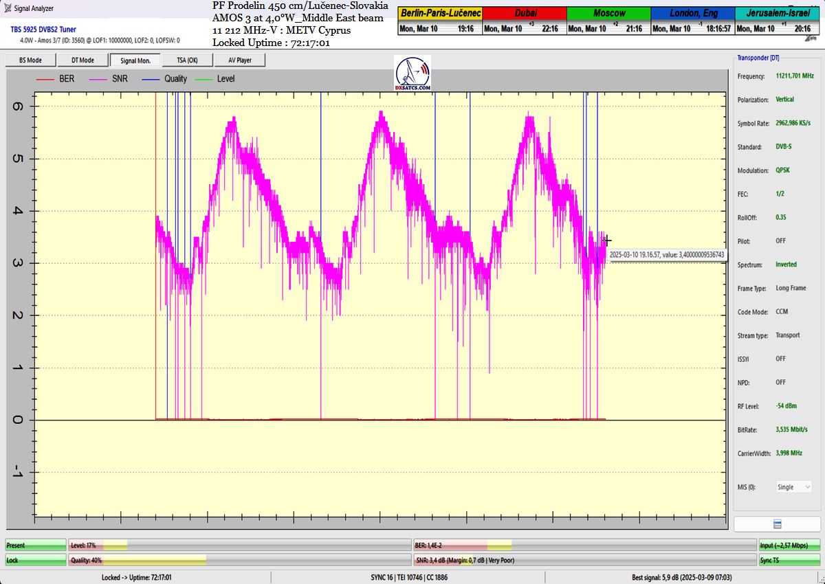 a hlavne stability príjmu 99,99% TV nosnej METV na f=11 212 MHz_V z dužice Amos 3,ktoré sú verifikované a dokázané jednotkou signálneho