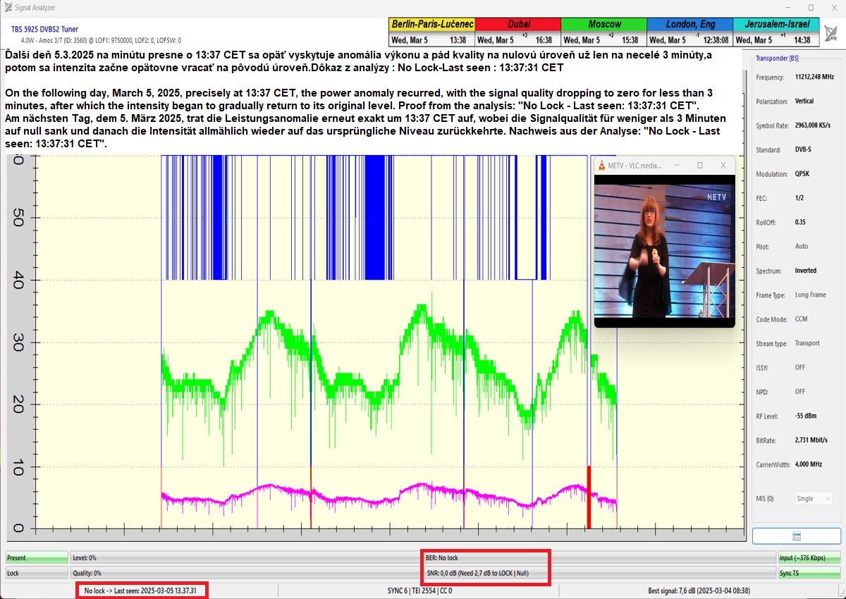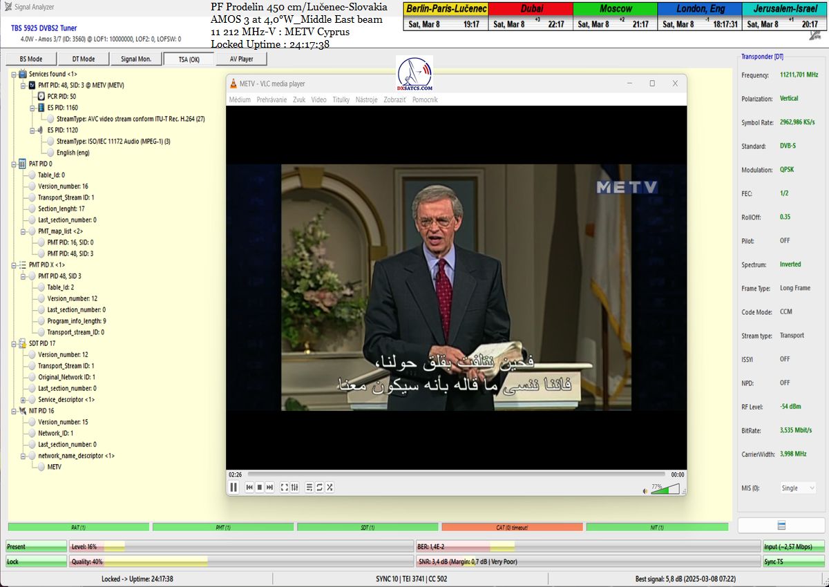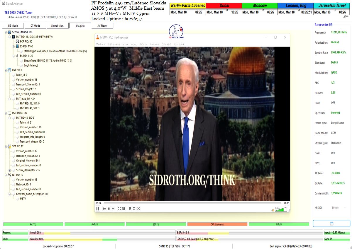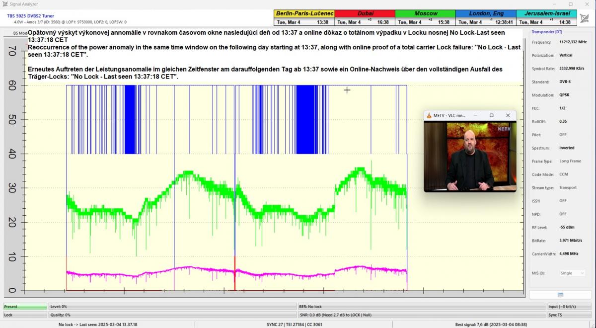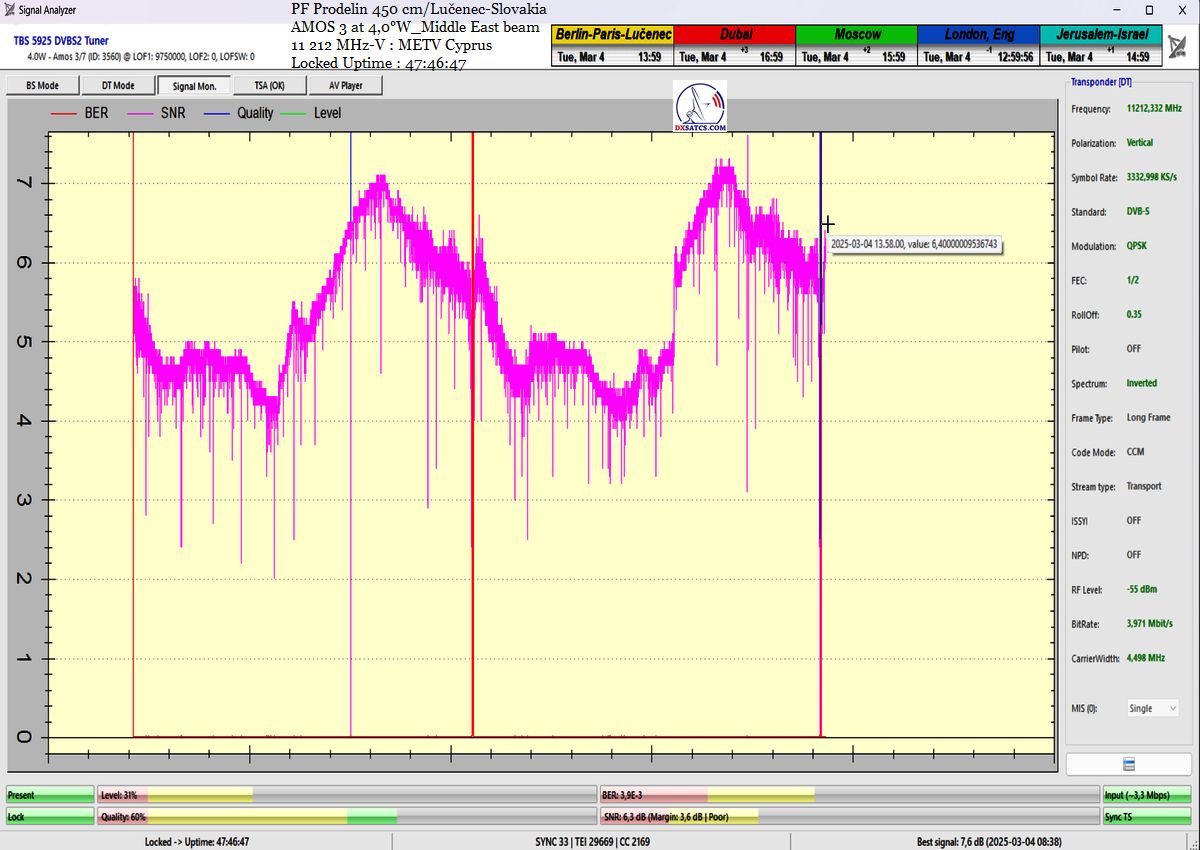 a hlavne stability príjmu 99,99% TV nosnej METV na f=11 212 MHz_V z dužice Amos 3,ktoré sú verifikované a dokázané jednotkou signálneho