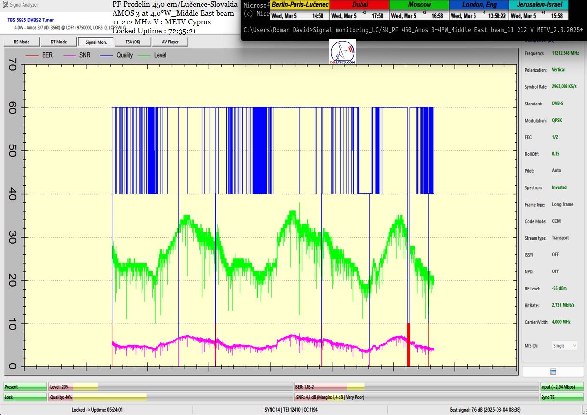 ►►Amos 3 at 4.0°W-11 212 MHz-V_Middle East TV : Analysis of signal monitoring over a duration of t=72 hours