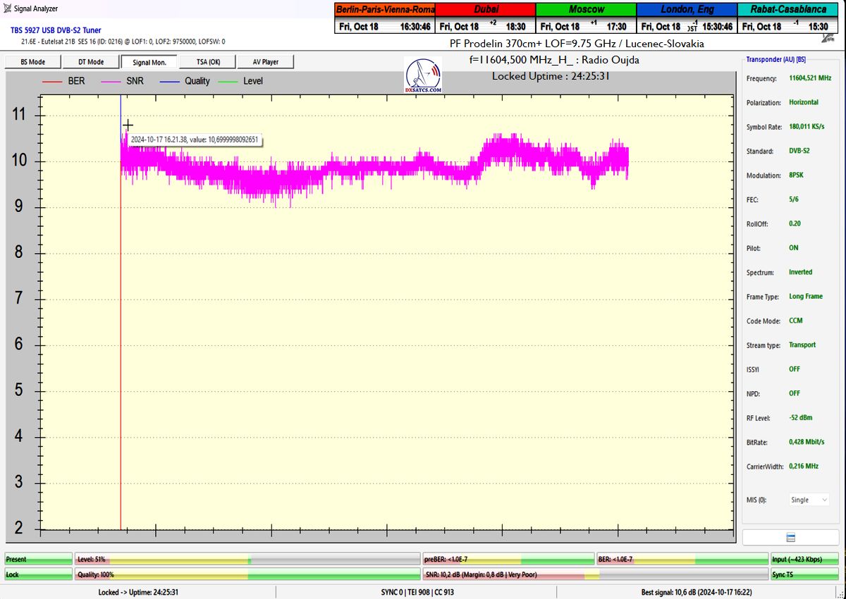 >Eutelsat 21B at 21.5°E_Low Symbol Rate>SR=180 ksym/s in satellite reception practice & Radio Oujda <