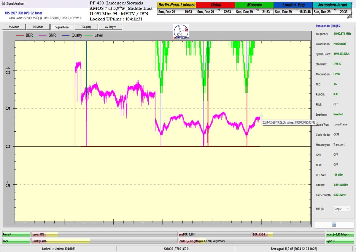 dočasného výskytu výkonovej anomálie,tak typickej pri príjme z družice Amos 7_Middle East beam. ►Teraz dokážem že moje tvrdenia sa zakladajú na nespochybnitelných dôkazoch.V poradí druhý výskyt výkonovej anomálie za 5 dní od 25 do 30.12.2024.