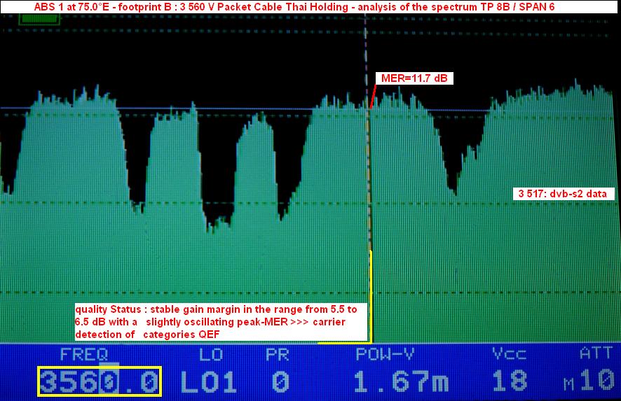 ABS 1 at 75.0°E-B footprint : 3 560 V packet CTH Cable Thai Holding-qualitative peak MER=12.2 dB
