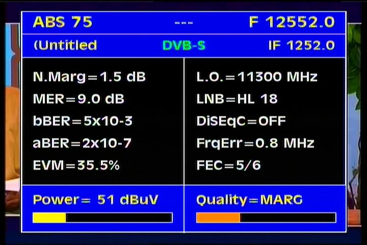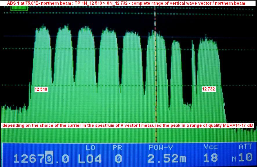 ABS 1 at 75.0°E : relative quality/ southern beam