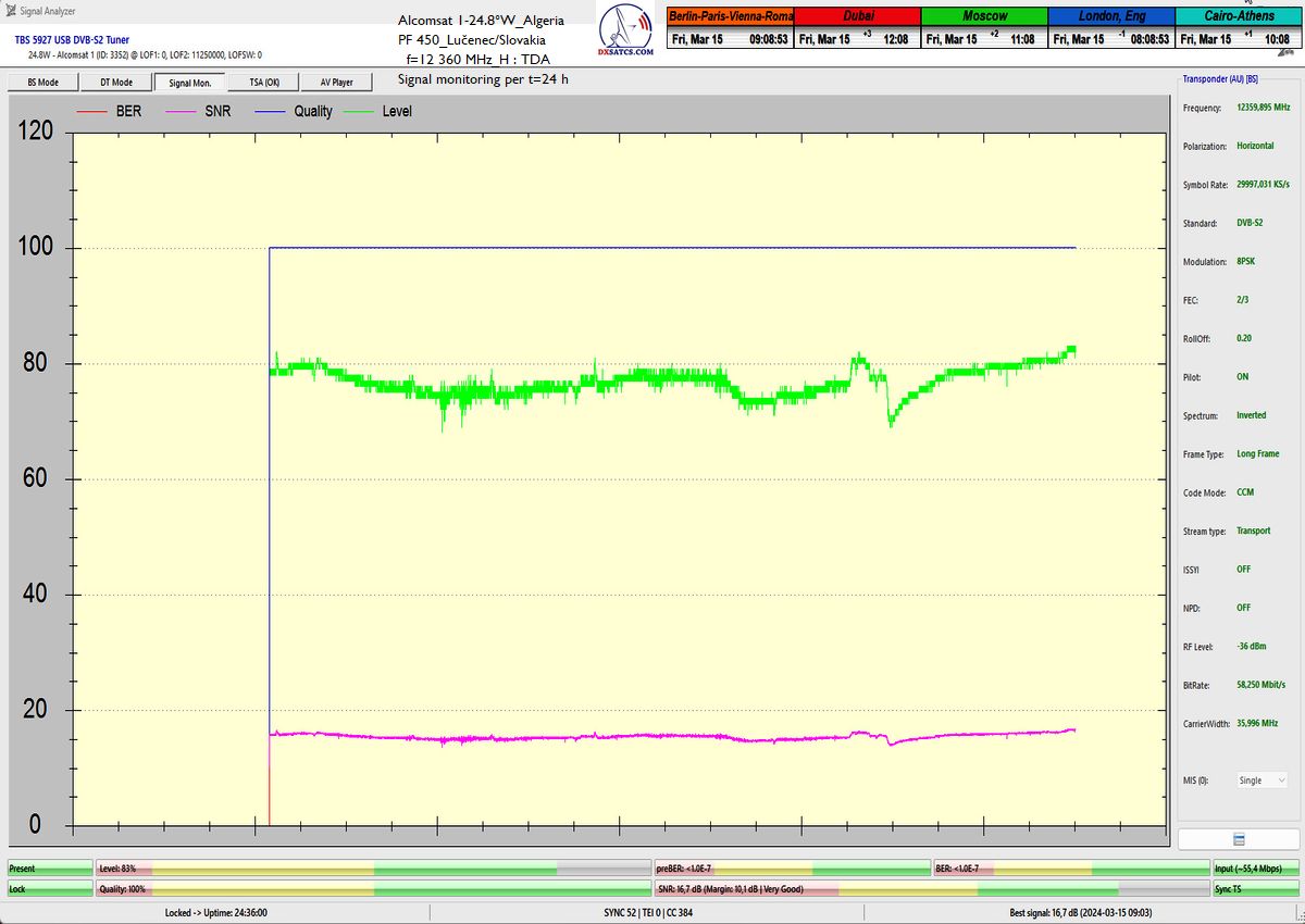 ►►Alcomsat 1 at 24.8°W-TDA Algeria : Continuous signal monitoring / Nepretržitý signálny monitoring