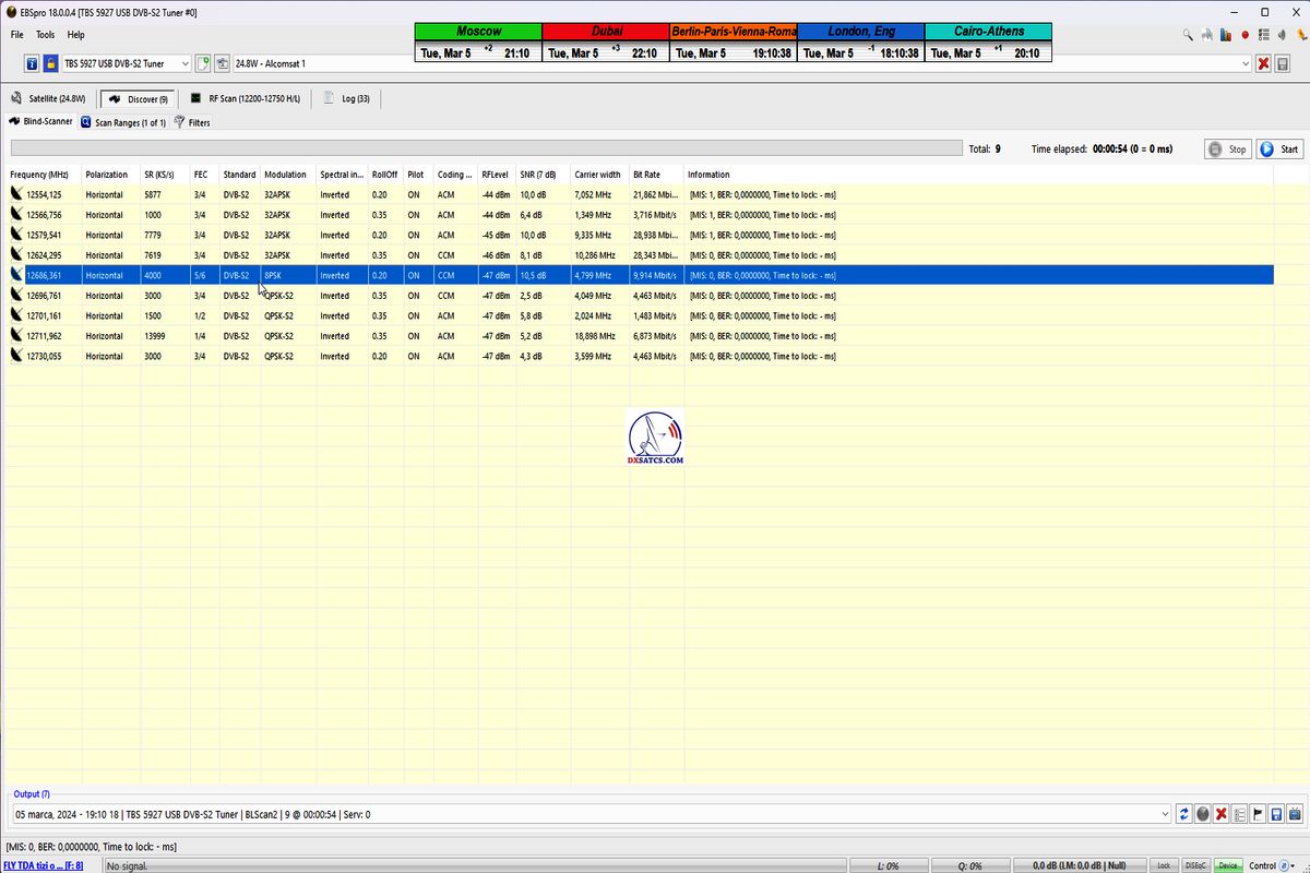 Sk_Dnes podrobím analýze rozpätie frekvenčného spektra horizontálneho vektora vlnenia od 12 500 do 12 750 MHz geostacionárneho objektu Alcomsat 1 na 24,8°W,následne budem kvantifikovať jeho obsadenie prevažne dátovou prevádzkou a konečne tým potvrdím že aj v tejto časti frekvenčného spektra a takmer každodenne operujú prenosové vozy alžírskeho satelitného operátora Télédiffusion d'Algérie (TDA). Zadefinujem parametre prenosu jeho nepravidelných FEEDS kanálov,aplikovaný systém podmieneného prístupu CA-BISS a samotnú kvalitu príjmu v stredoeurópskej zóne so symetrickým reflektorom s priemerom D=450 cm.Dokážem tým že mnou aplikovaný signálny reťazec práve na týchto FEEDS linkách generuje v danej zemepisnej oblasti najnižšiu mieru rezervy v kvalite príjmu,ktorá navyše dynamicky osciluje od 0,5 do 2 dB, zo všetkých aktuálne vysielaných televíznych paketov.Zo samotnej technickej podstaty a len nepravidelného výskytu Feeds kanálov, pochopitelne nemôžem a nebudem verifikovať dosiahnutú formu stability príjmu v signálnom monitoringu v jednotke monitoringu t=72 hodín.