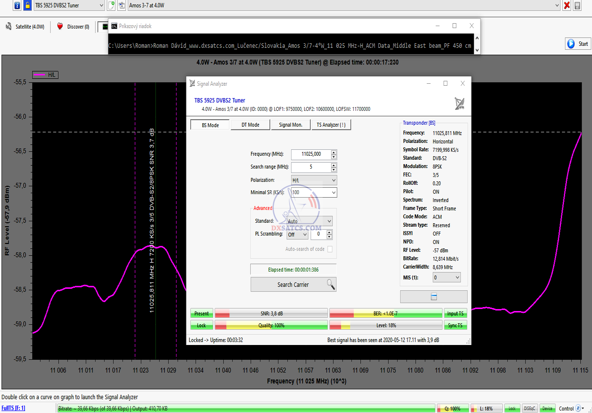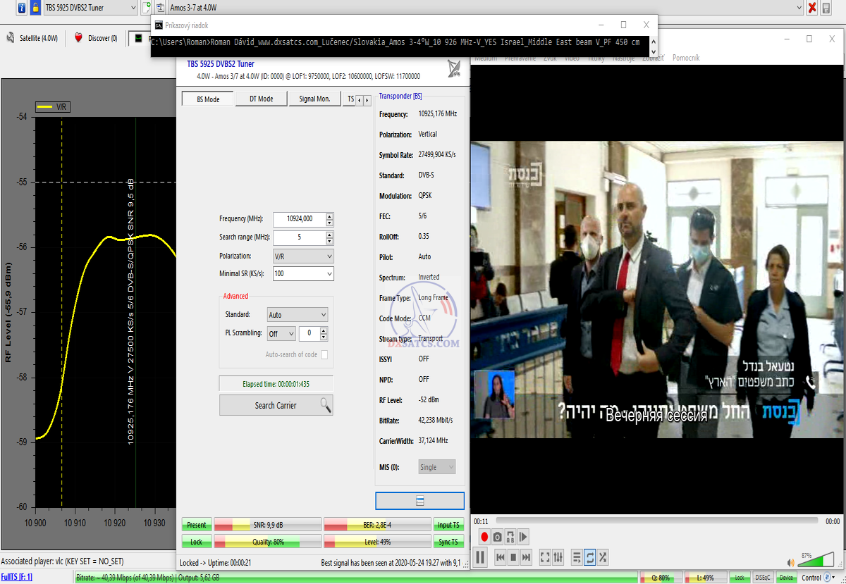 16.8.2020 : PREMIÉRA od autora Romana Dávida : PRVÝ kontinuálne prítomný (stabilne detekovatelný) LOCK nosnej KAN Izrael na f=11 113 MHz v centrálnej európskej zóne z družice AMOS 7-3.9°W s amplitúdou kvality až MER=9,2 dB ...
