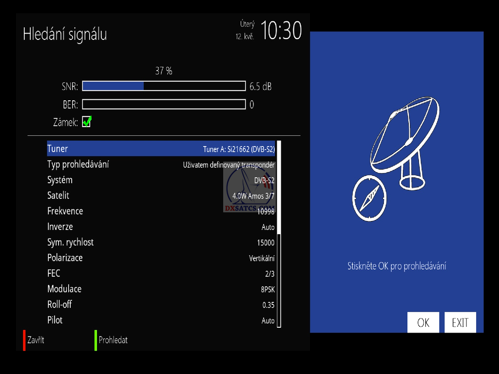 10 998 MHz _V_ YES HD Izrael : AKTÍVNY Signálny model > 8:30-11:30 a.m._ stabilný LOCK nosnej v trvaní