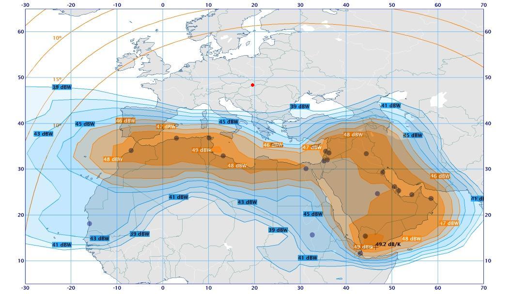 Arabsat 2B at 30.5°E footprint _ KU band downlink coverage