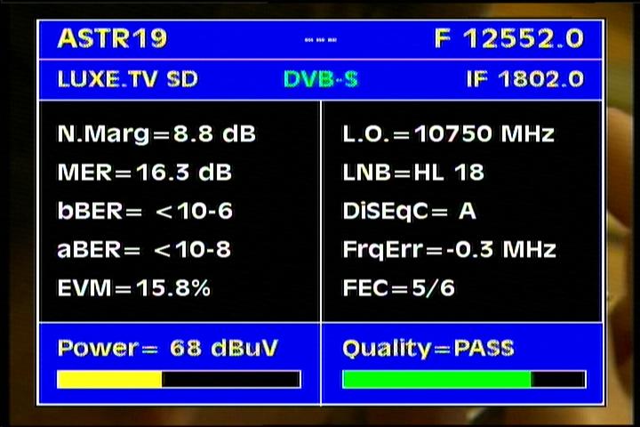 Update - Astra 1L/1H at 19.2°E - european footprint : quality of income as defined in the spectral analysis
