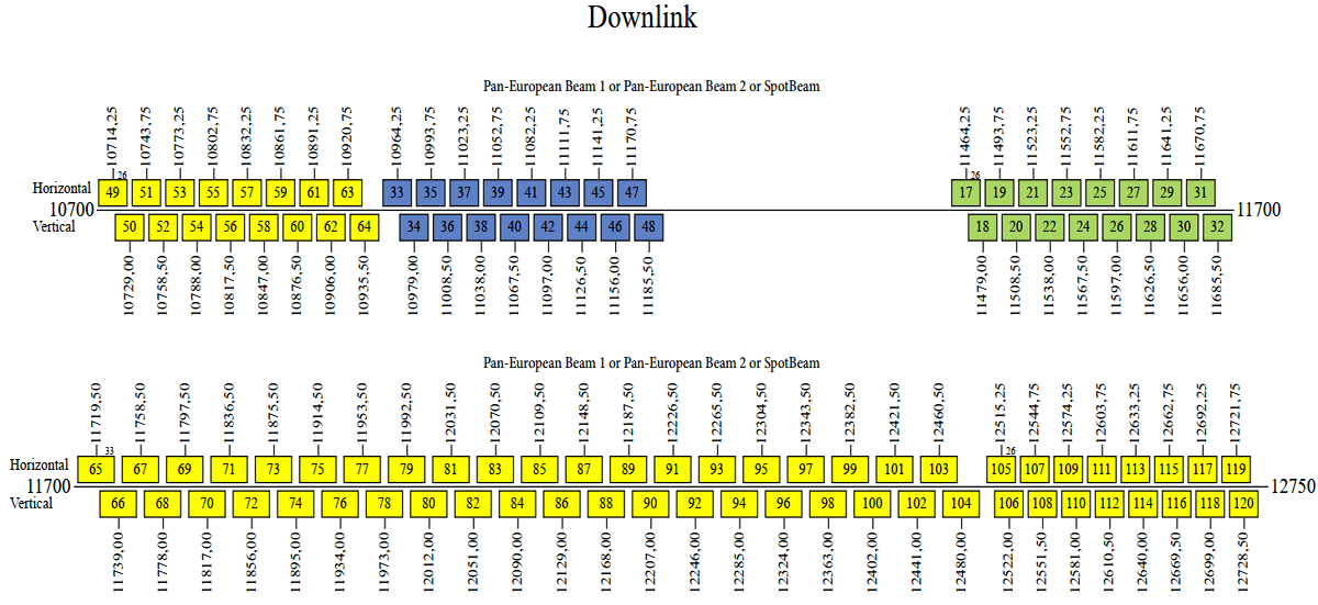 10 700 - 11 700 MHz _linear V+H 11 700 - 12 500 MHz_linear V+H