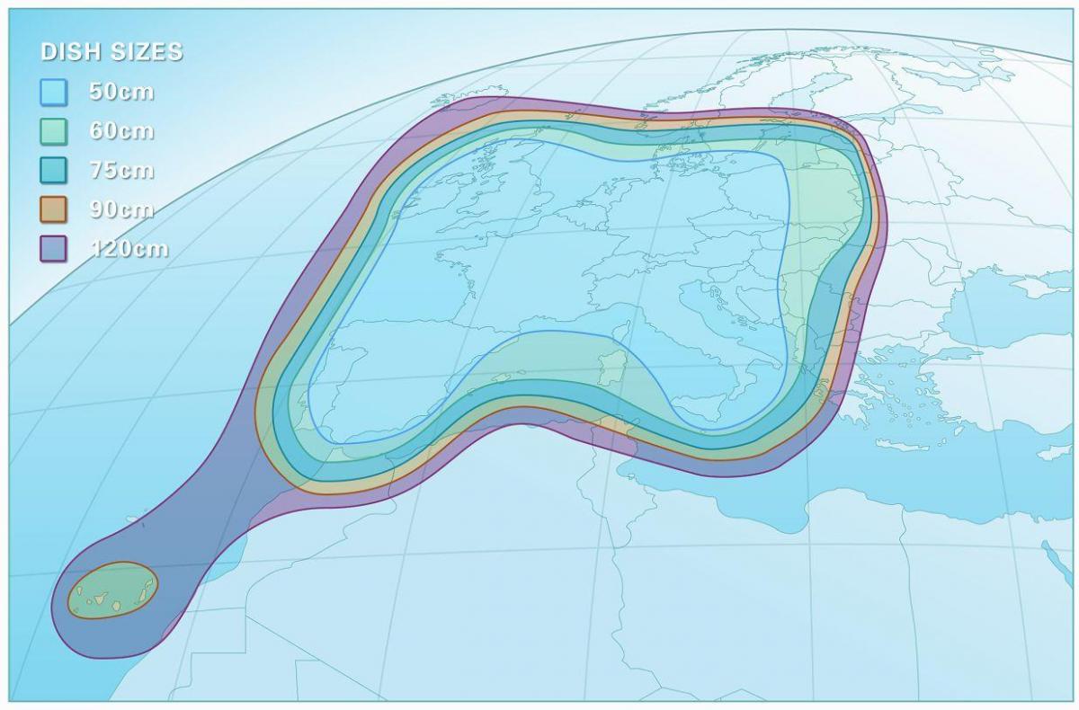 North footprint for Astra 2A+2B North footprint for Astra 2D South footprint for Astra 2A+2B