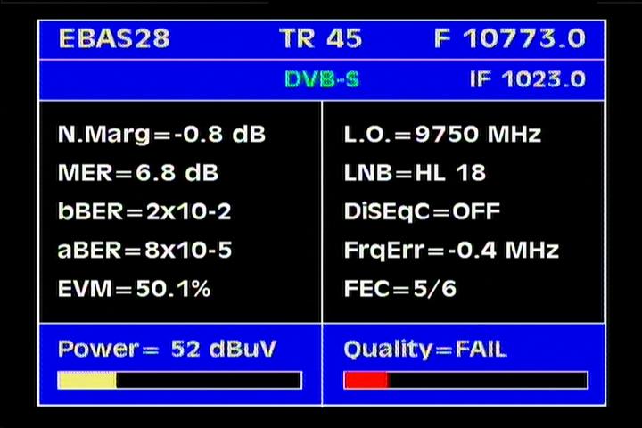 Astra 2D at 28.2°E - H+V North footprint : Radiating diagram & spectrum analysis & quality analysis of reception