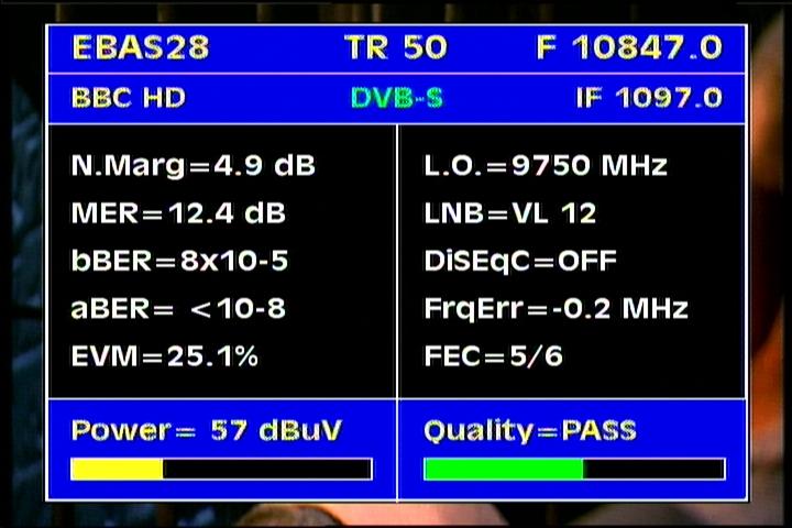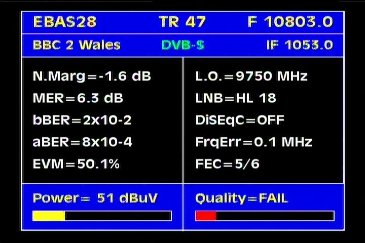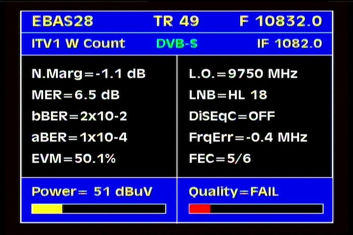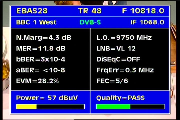 Astra 2D at 28.2°E - H+V_North footprint : qualitative analysis of the reception the BBC television network, ITV, SKY