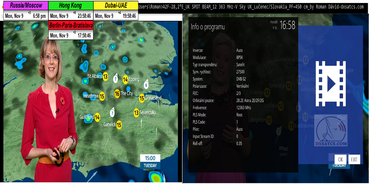►Obrazová a video demonštrácia príjmu z f=12 363 MHz v Lučenci : Sky Uk