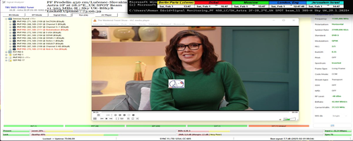 v jednotke monitoringu t=29 hodín.V jednotke t=73 hodín som dosiahol stabilitu príjmu na 99,99%,kde sa z celkovo monitorovaných 262 800 sekúnd vyskytla pixelácia obrazu v piatich sekundách , ovšem bez jediného výpadku v Locku nosnej za jednotku t=73 hodín,pretože návrat z pixelácie do kontinuity priebehu Locku