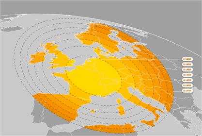 Atlantic Bird 2 & Telecom 2D at 8,0°W footprint : European/France/Middle East beam