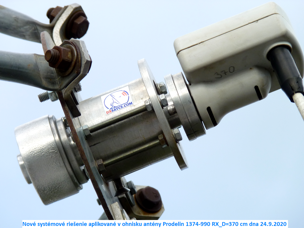 a signálneho zberača v LNB (SKEW_pretože daný sekundárny radiant Prodelin 3.7m-AZ/EL-1374-990 RX nie je uchytený v polárnom