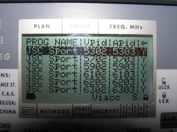 ---SR--- | ---FEC--- | ---Footprint--- | ---Antenna--- | ---Video/Encryption--- |