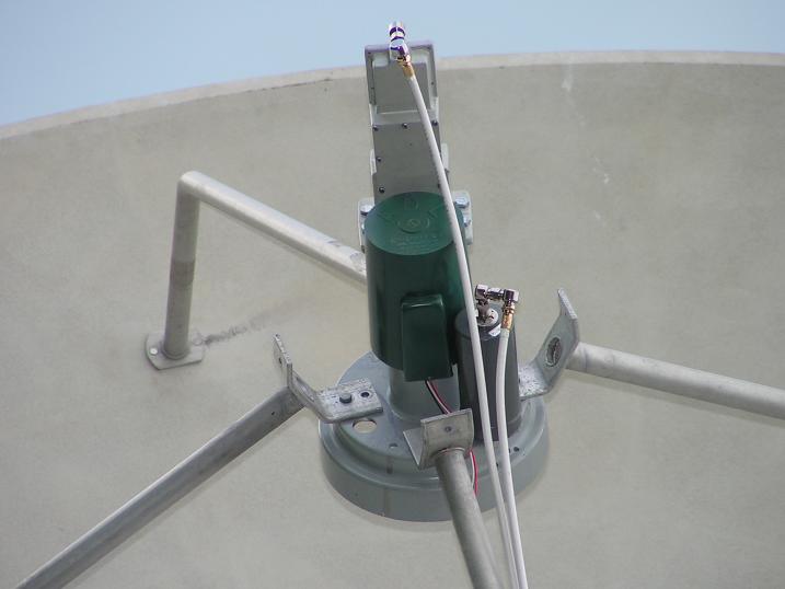 V testovacej prevádzake som použil bežný C pásmový jednopolaritný LNB so zmeranou šumovou teplotou 25 Kelvinov od amerického výrobcu SATRON a pre KU pásmo som inštaloval jednopolaritný LNB od švédskej firmy