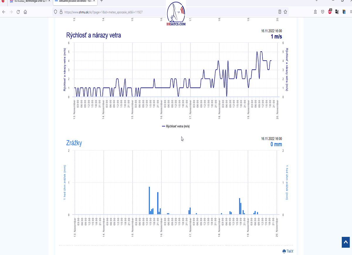 -A- : Začiatok signálneho monitoringu dňa 16.11.2022 o 17:20 seč a aktuálna poveternostná situácia
