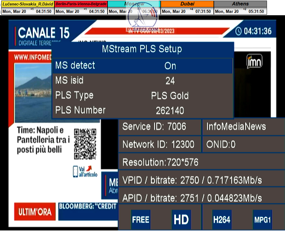 > PARAMETRE PRENOSU : DVB-S2 _ 16APSK _ SR=41 950 _ FEC=2/3 _ PLS Gold 262140 _ Multistream 12-13-17-23 <