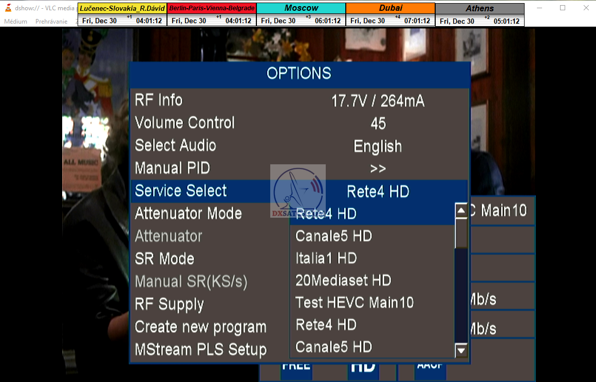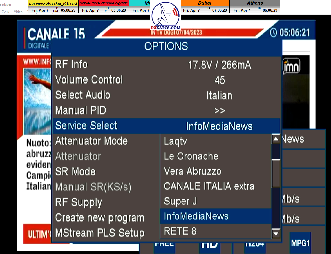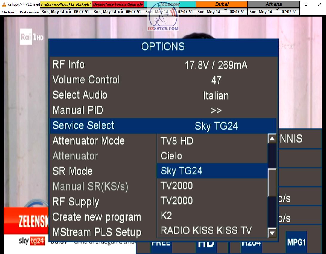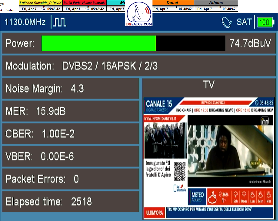 zámerne beží na pozadí meraní vysielanie TGCOM 24+R101 s kódom o aktuálnom čase,za účelom vylúčenia podvodov a verifikáciu správnosti času