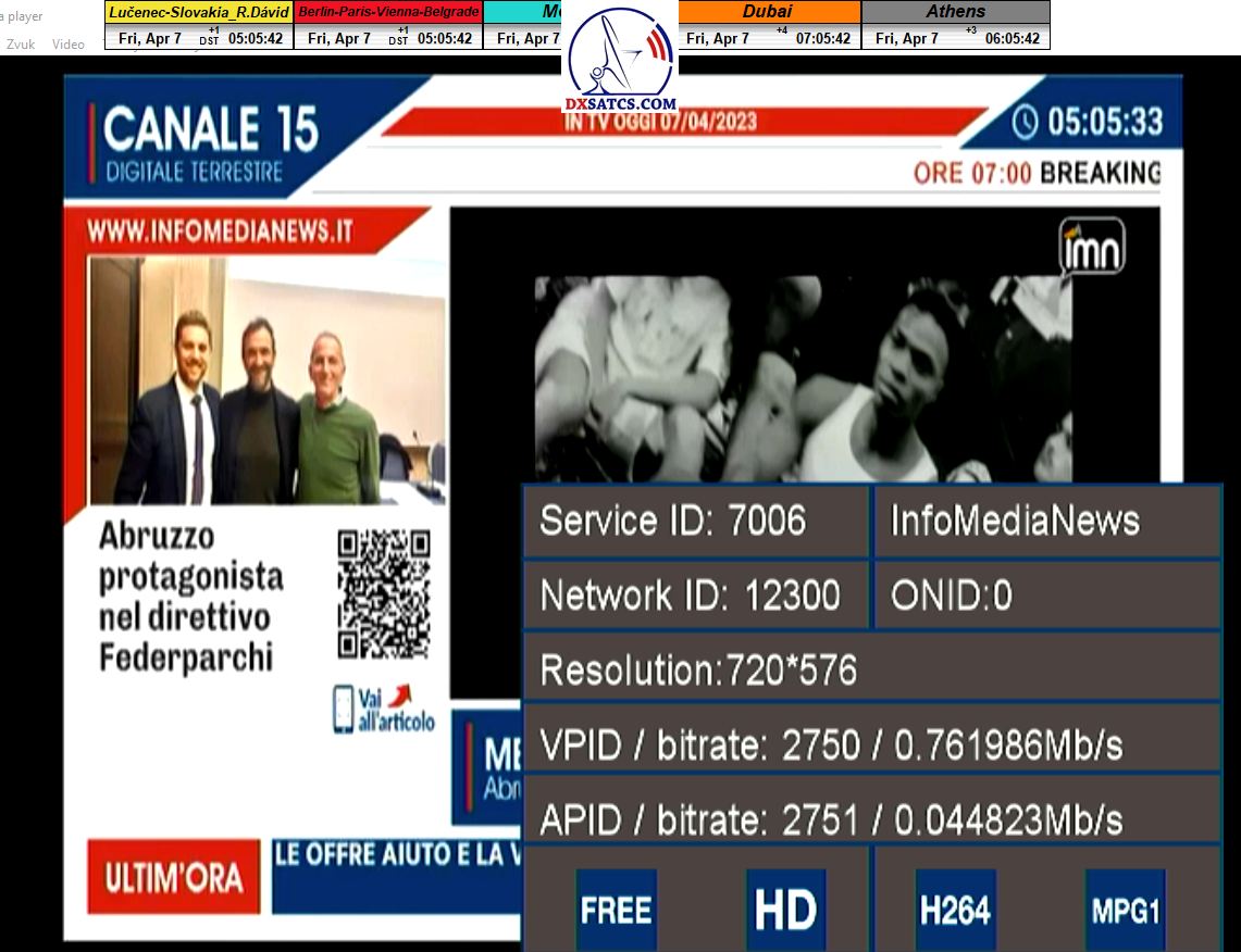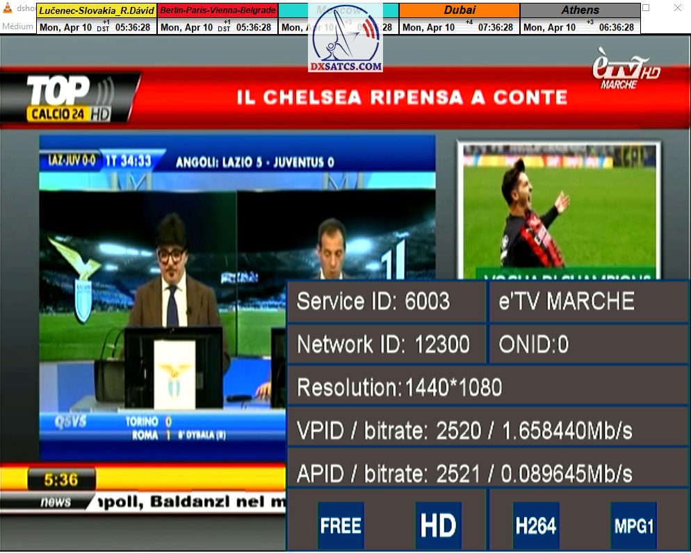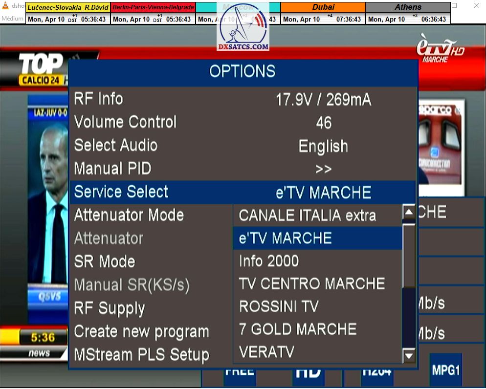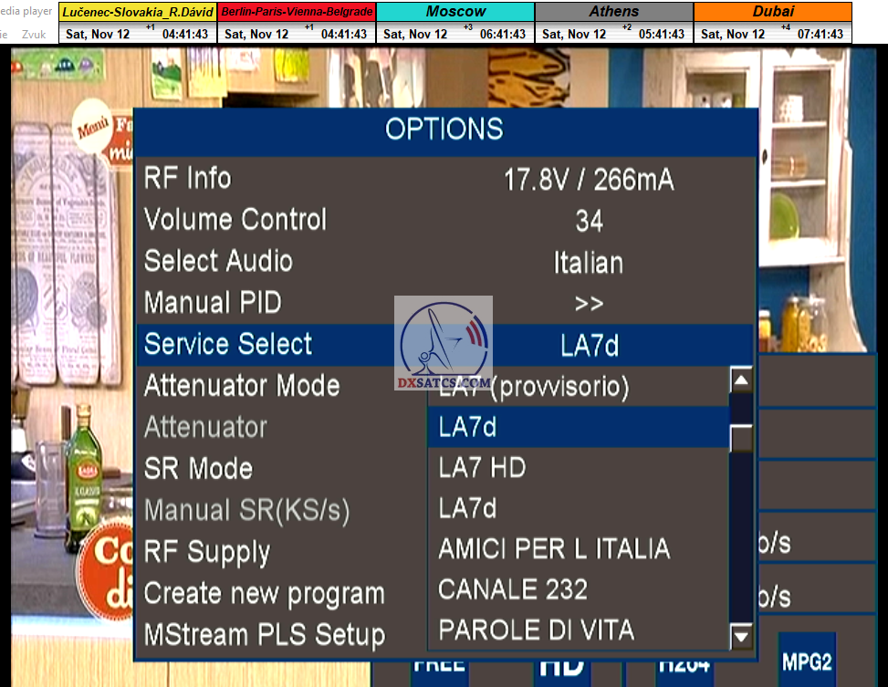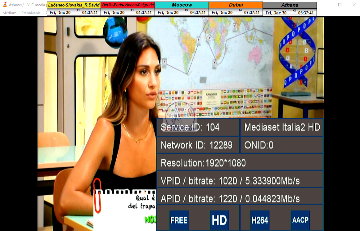 zámerne beží na pozadí meraní vysielanie TGCOM 24+R101 s kódom o aktuálnom čase,za účelom vylúčenia podvodov a verifikáciu správnosti času