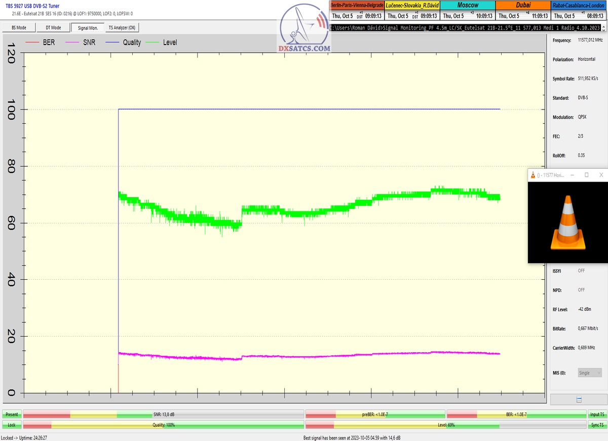 ďažďových prehánok dňa 30.9.2023 pri monitoringu rádio prenosu SNRT Dakhla s SR=175 Ksym/s.Zámerne som kvantitu monitoringu zdvojnásobil