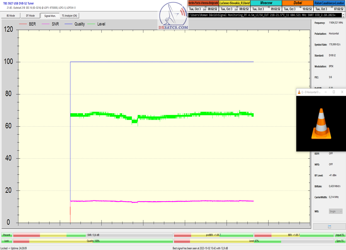 majáka s akou frekvenčnou presnosťou Vaša konfigurácia pracuje.Ak som použil starší typ LNB SMW WDL Digital Type E na báze DRO-dielektrického rezonátora,