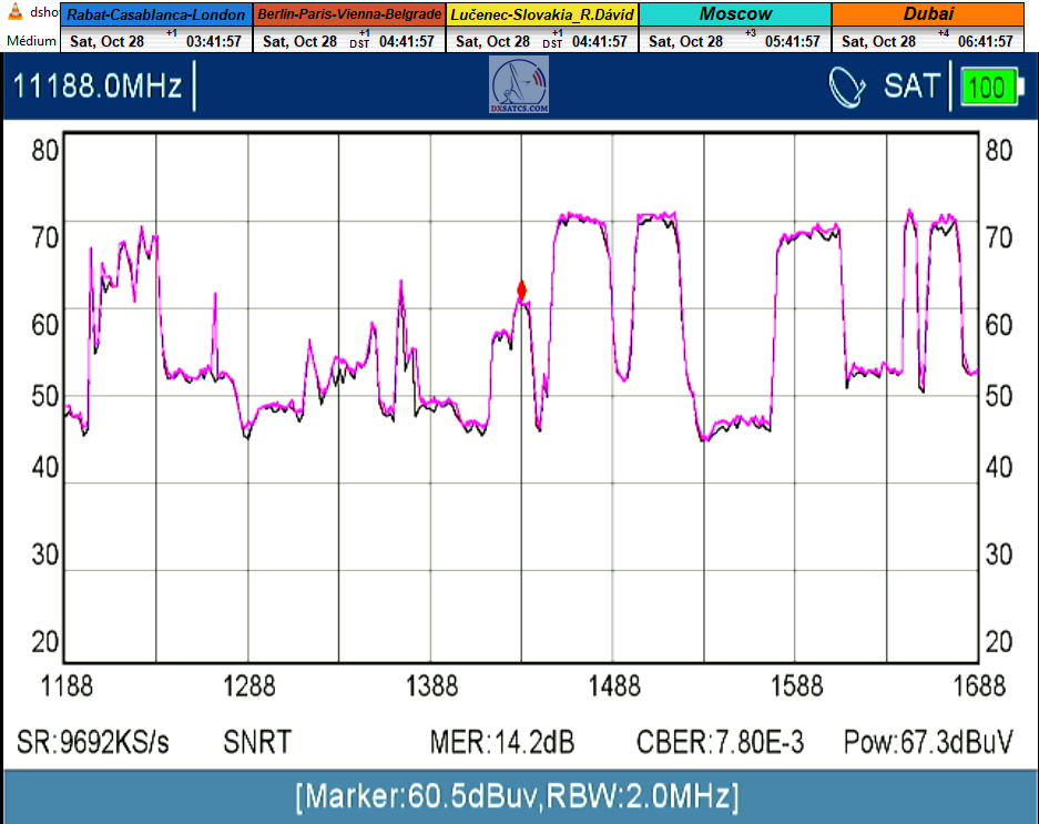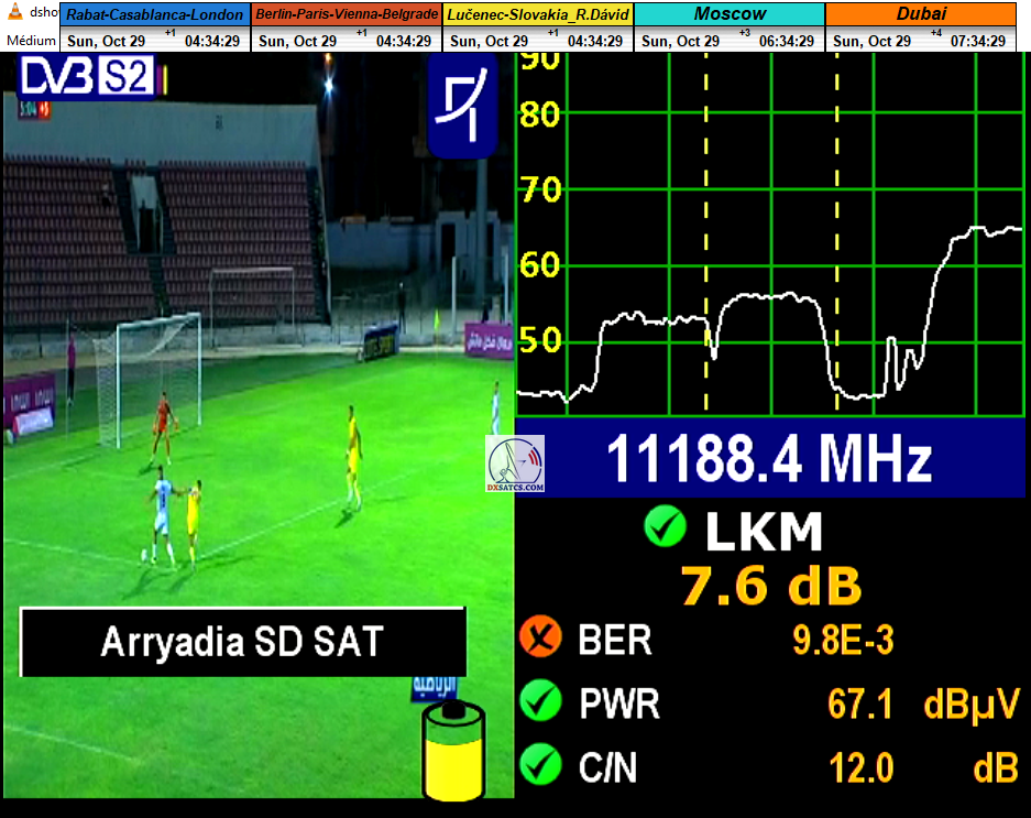 MONITOROVANÁ FREKVENCIA MAROCKÉHO PROVAJDERA SNRT Arryadia na f=11 188,4 MHz