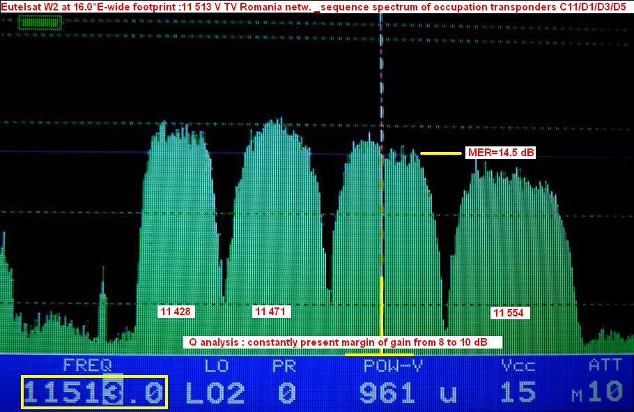 Eutelsat W2 : constantly present margin of gain from 5 to 11 dB / depending on the choice of the carrier in the spectrum