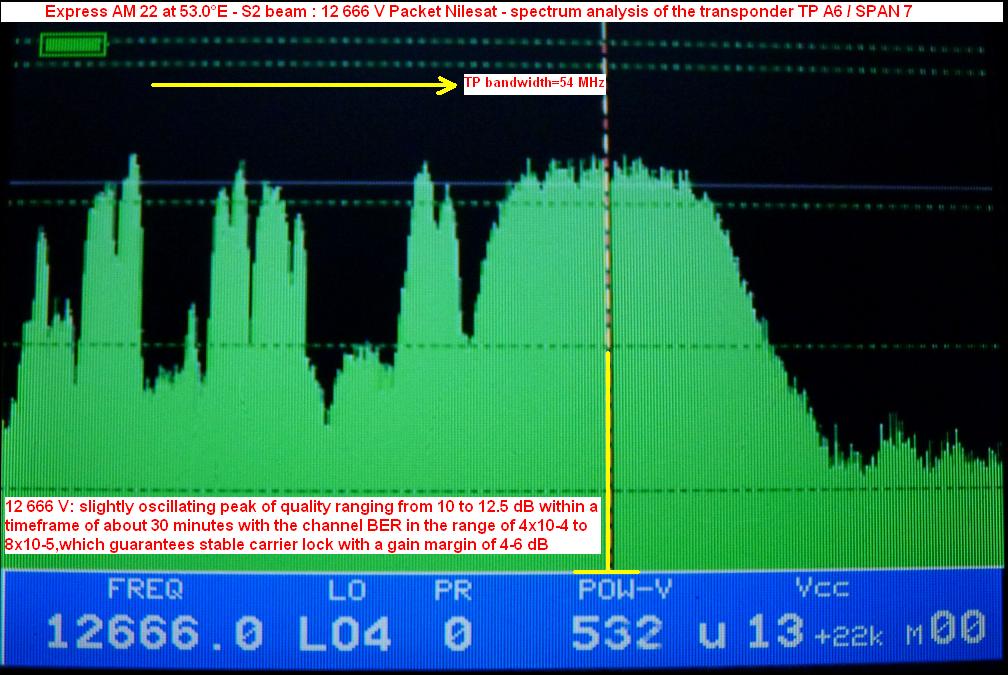 --- express am22 at 53.0°e-S1 beam : 12 666 V Nilesat netw. Egypt-quality peak MER=12.2 dB ---