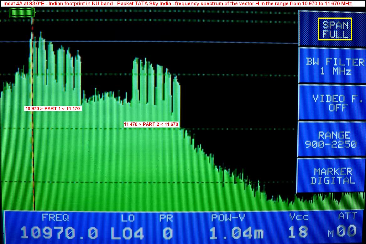 Insat 4A at 83.0°E-footprint in KU band-TATA Sky: first part of the spectrum>10 970-11 170 MHz
