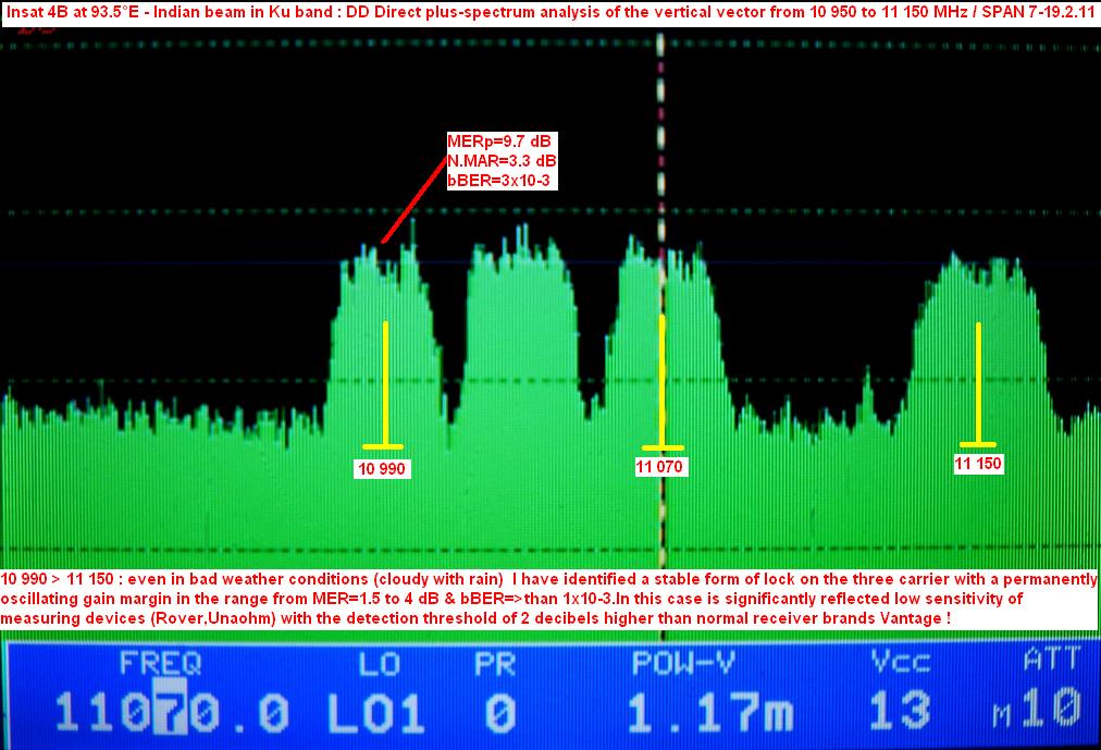 - Insat 4B at 93.5°E-DD Direct plus : 19.2.2011 & spectrum analysis of the vertical vector from 10 950 to 11 150 MHz -