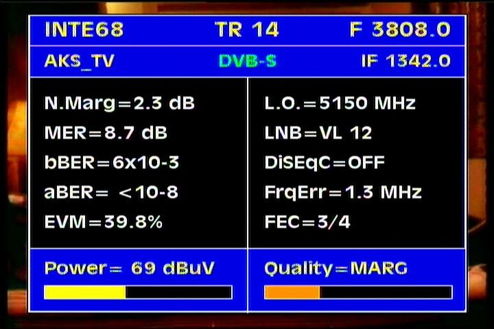 4 064 H-Packet PanamSat > I measured the qualitative status & PF 370 cm : stable level of gain margin of about MER=8 dB