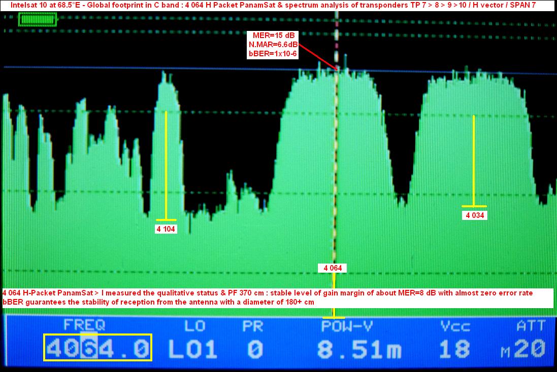 --- IS 10 at 68.5°E : 4 064 H Packet PanamSat & spectrum analysis of transponders TP 7 > 8 > 9 >10 / H  ---