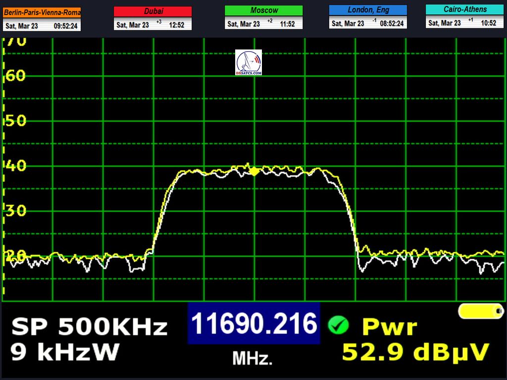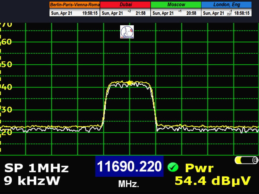 Každá z frekvencií na ktorých je nosná zamknutá a demonštrovaná HW/SW konfiguráciou DVB-S2 PC karta TBS 5927 & SW EBSPro je podladená