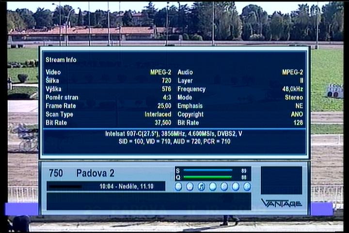 Intelsat 907 at 27.5°W - North East zone footprint : feeds _ 3 856 LC DVB-S2/8PSK Padova 2 Italy