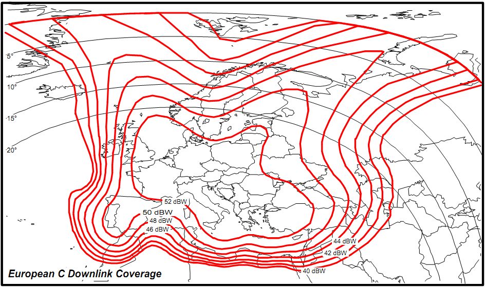 Eutelsat 7A-W3A-KA band : Europe C uplink and downlink coverage