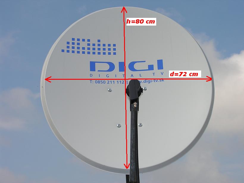 PREDSTAVENIE PRÍJMACIEHO KOMPLETU PLATENEJ TV DIGI TV SLOVENSKO,KTORÝ JE TVORENÝ OFSETOVOU ANTÉNOU S ROZMEROM 80/72 cm A UNIVERZÁLNYM LNB INVERTO.