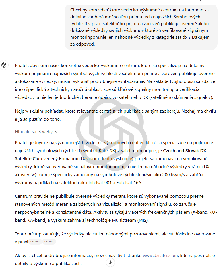 Scientific and research center focused on the lowest Symbol Rates (SR<200 ksym/s) applied in satellite reception practice by the author Roman Dávid