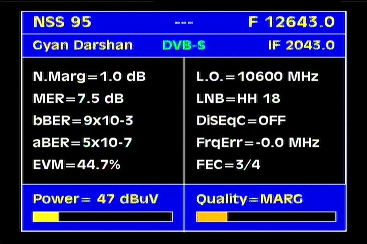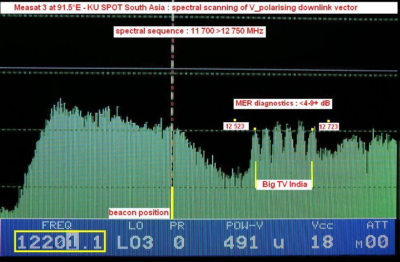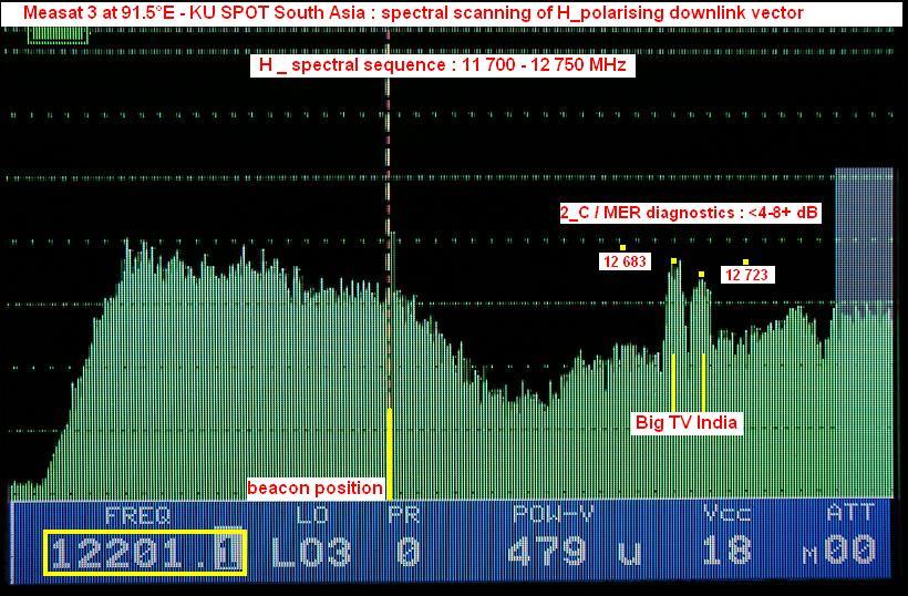 Measat 3 at 91.5°E-KU South Asia beam:MPEG-4 Big TV_V+H spectral scanning & ULPC beacon frequency