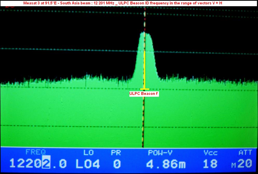 Measat 3 at 91.5°E-Reliance Digital TV : identification of the satellites in orbit by ULPC Beacon -f-