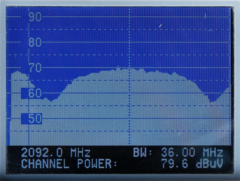 ekvivalentných ziskových hladín antény v celom orbitálnom rozsahu 40° (pri teoretickom predpoklade rovnakej hladiny príchodzieho