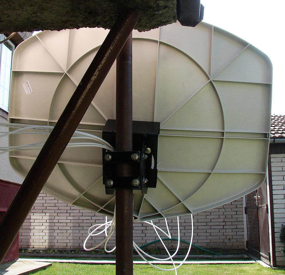 LNB ,ktorý umiestnim do hlavného-nie do postranných ohnísk antény.Výrobca neuvádza že zisková hladina reflektora 36 dBi sa už pri
