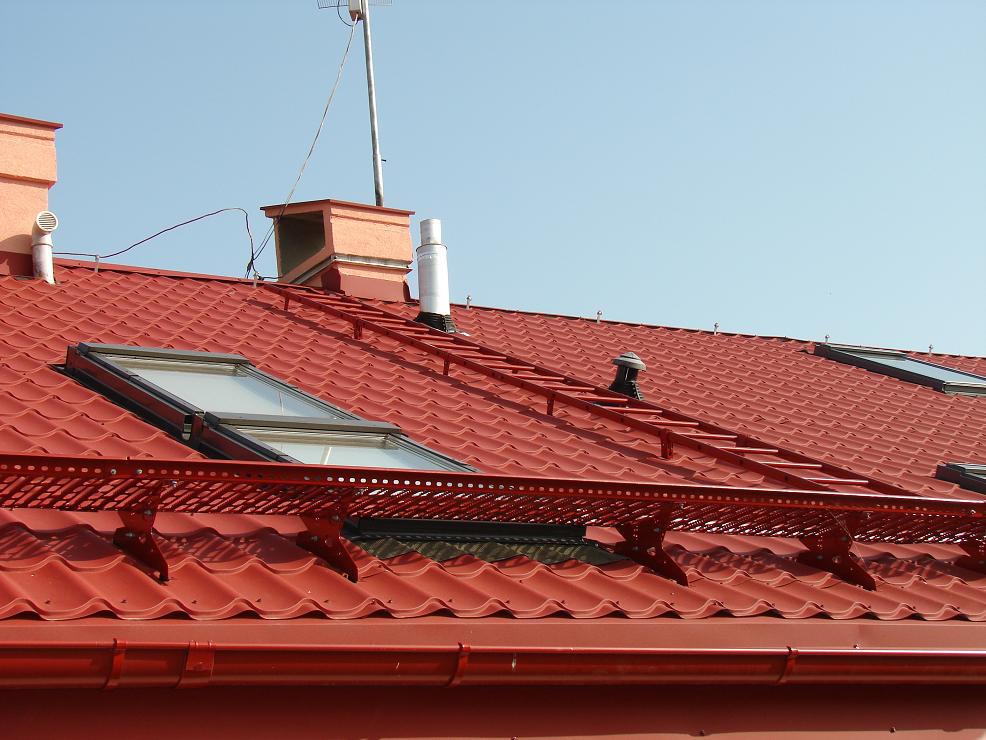 Jednou z možných ciest ako minimalizovat príp.uraz pri inštalácii,pri servisnom ukone je možnost,že príslušná osoba bude pri výstavbe daného objektu používat také prostriedky,ktoré nielen ulahčia spomenutý výstup po streche ale minimalizuju príp.uraz pádom z výšky.Množstvo výrobcov krytín totiž vo svojich katalogoch ponuka profily v tvare nášlapných kovových ploch,pomocou ktorých je možné previest bezpečný výstup ku danej časti strechy či už ku stožiaru tv,sat príp.komínu pri ktorých je možné umiestnit plošinu menších rozmerov,ktorá je sučastou danej krytiny,zvačša býva taktiež v kovovm prevedení farebne zladená s krytinou.Jedným z hlavných dovodov prečo spomenuté pomocky na strechách vídat málo je udajná neestetickost,s tým že je podla vyjadrení majitelov narušená akási uniformita vzhladu objektu.Hlavný dovod neinštalovania spomenutých pomocok pri výstupe je ale aj udajná vyššia cena za príslušné prevedenia a tým snaha učastníka minimalizovat výdavky spojené s výstavbou strechy objektu s odovodnením už spomenutým-min.počet príp.ukonov,zásahov.