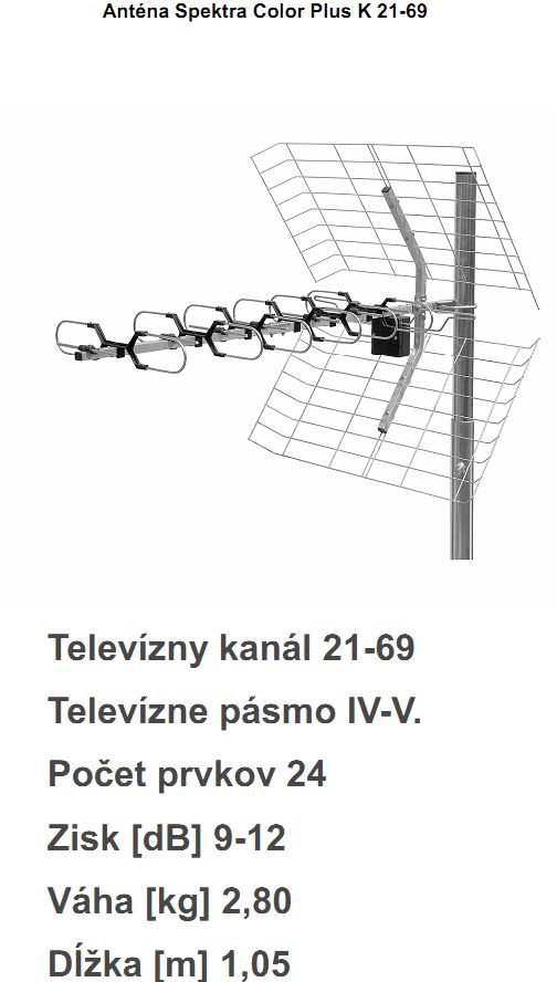 2, Popis inštalácie :  anténa Spectra Color Plus-24 prvkov_K 21-69