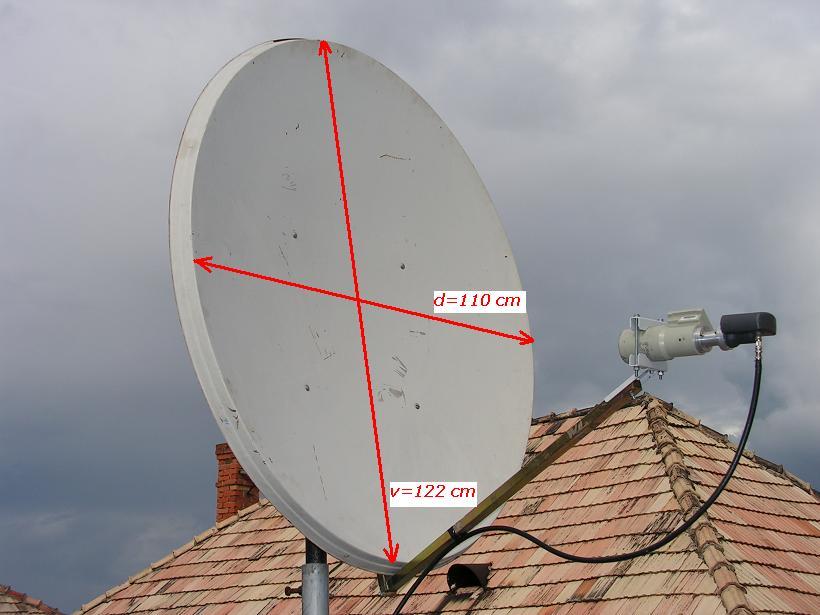 Ofsetová anténa maďarskej výroby,ktorú v minulosti predával jeden z väčších imortérou sat.techniky na Slovensko s aktívnym priemerom 122/110 cm vo fixnom uchytení je jasným príkladom z praxe keď priemer reflektorovej steny nesúvisí-nekorešponduje so ziskom čiže smerovosťou.Anténu si zakúpil zákazník v dobrej viere nárastu zisku v porovnaní s predtým používanou príjmacou anténou od výrobcu FTE s priemerom 95 cm,čo potreboval hlavne sa dosiahnutie aspoň minimálnej signálnej rezervy pri príjme niektorých vo vertikálnej polarizácii vysielaných paketov z družice NILESAT 101 a 102 na 7°W.Výsledok prevyšoval aj tie najnegatívnejšie očakávania a nielenže s touto anténou nedosiahol želaný nárast signálnej kvality,ktorú testoval s niekoľkými typmi v súčasnosti používaných UNI LNB ako Invacom,Inverto,Sharp... výsledok bol dokonca horší ako s predtým používanou anténou FTE typu OS 100.