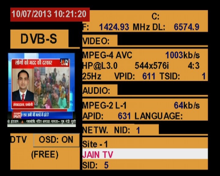 3 725 @ 1 424.93 MHz : 83°E NSTPL India / Site-1